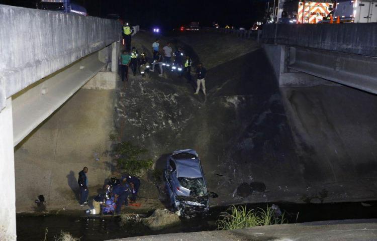 An off-duty police sergeant whose car was hit from behind sending him plunging into a river on Friday afternoon, February...
