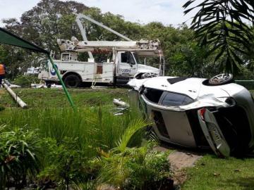 A PIRATE bus on the San Vincente route, reportedly with failed brakes sent a car into a ditch and involved...