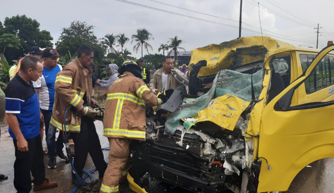 A three-vehicle collision including a school bus on the Inter-America highway in Capira, Panama Oeste 8 injured six people and...