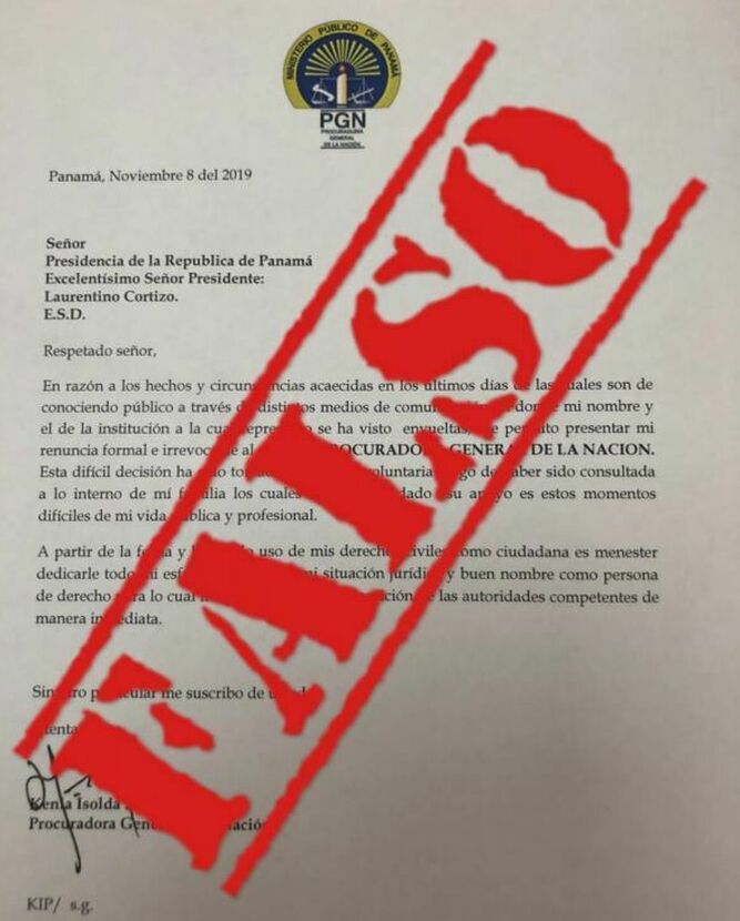 A letter circulating on social networks with the alleged signature of Attorney General Kenia Porcell, telling President Laurentino Cortizo, that...