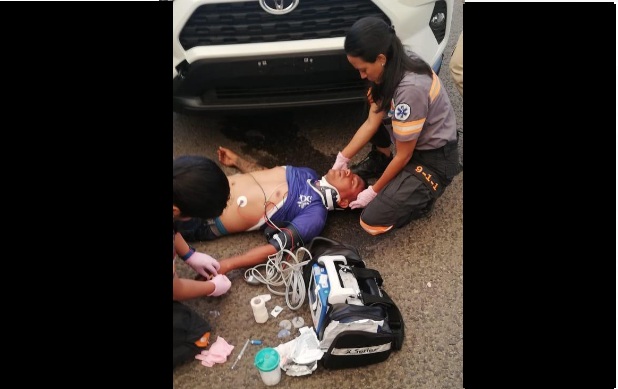 A video circulating on social networks shows a powerfully built driver kicking a taxi driver lying on the road after...