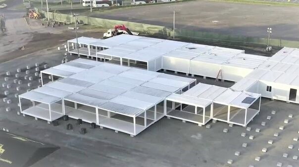 Work continues around the clock on the modular hospital under construction in Albrook to house coronavirus patients in Panama City...