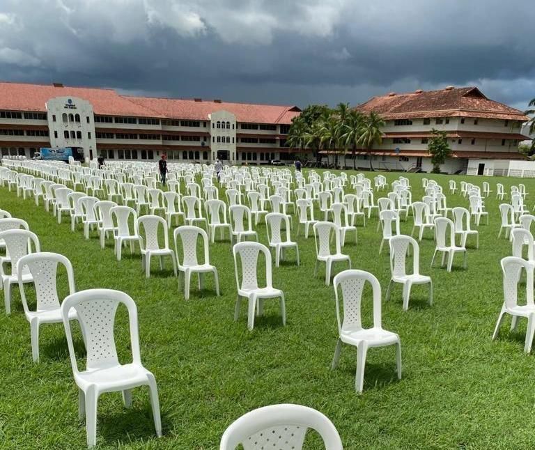 Hundreds of empty chairs sit in a field in the City of Knowledge (Clayton) each one marking the death of...