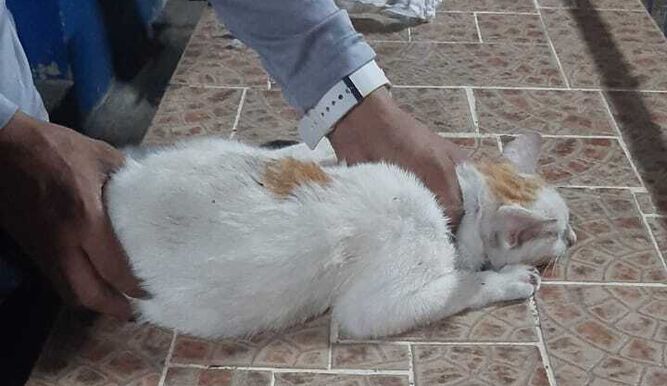 A cat with packets of drugs tied to its body was caught at the perimeter fence of the Nueva Esperanza...