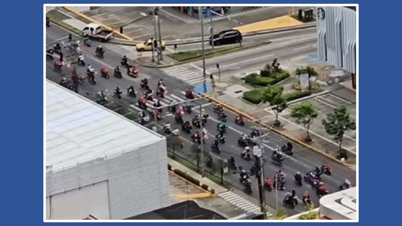 Scores of motorcyclists, many sporting the shirt of the Panama national soccer Team paraded on Avenida Balboa with the Panama...